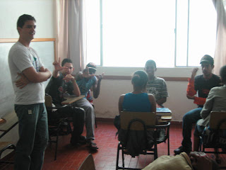 Dinâmica “Quem é você? ” realizada pelos estagiários do curso de psicologia da Univiçosa. O objetivo foi incentivar o auto conhecimento nos adolescentes.