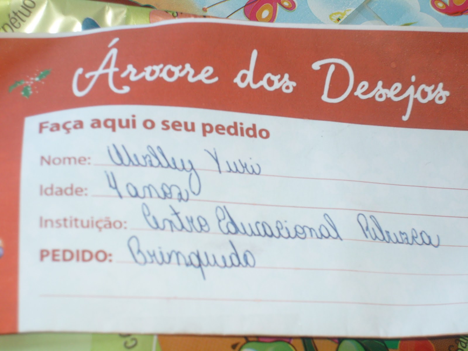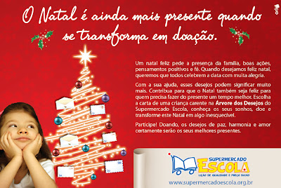 Em um formulário enviado pelo supermercado, elas escreveram o nome, a idade e a instituição, e um presente que gostariam de ganhar neste Natal. A equipe responsável pela organização da campanha “enfeitou” a árvore de natal do supermercado com as cartinhas, e os clientes puderam escolher um ou mais pedidos para presentear as crianças.Ficamos surpresos em ver a adesão que a campanha teve pelos clientes do Supermercado Escola.