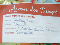As crianças e adolescentes da Rebusca foram contemplados na campanha realizada pelo Supermercado Escola: Árvore dos Desejos.